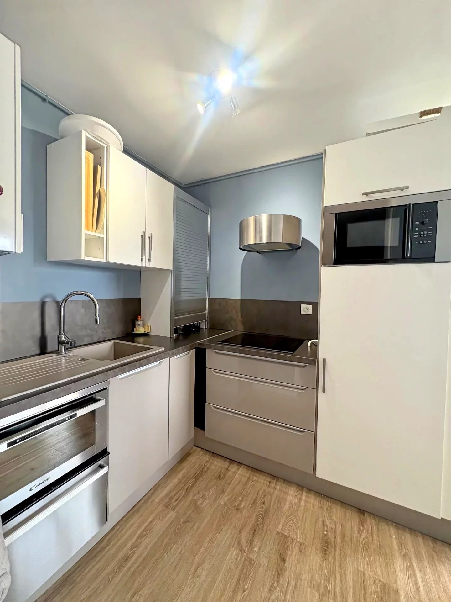 La chaudière neuve garantit un confort optimal toute l’année. L’appartement comprend également une chambre avec placard intégré, un coin cabine, ainsi qu’une salle d’eau avec WC, moderne et pratique. Profitez pleinement du balcon exposé plein sud, parfait pour vos moments de détente au soleil.
